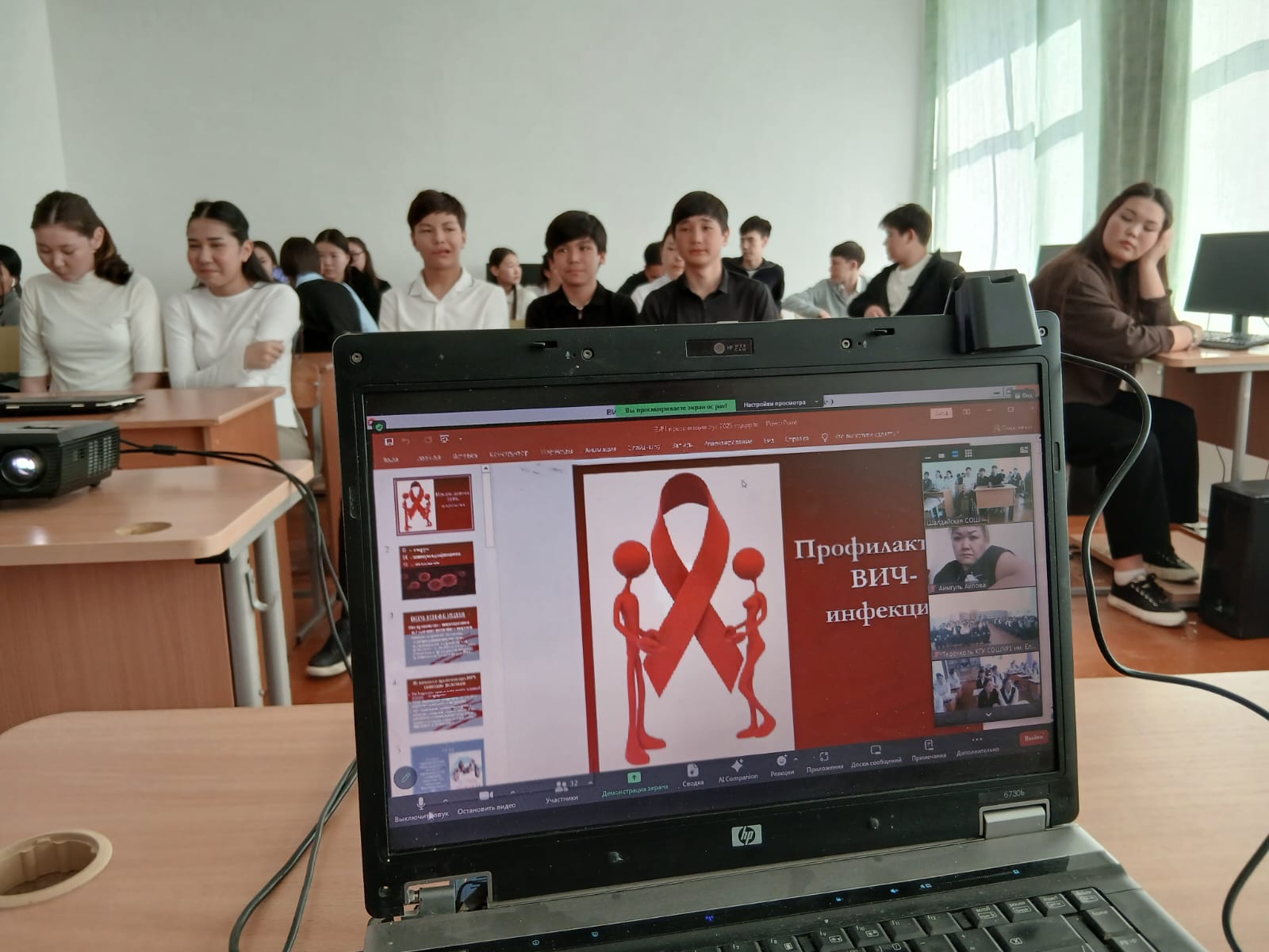 Орталық педагогы К. Е. Бараисова оқушылар мен қатысып отырған педагогтарға АИТВ, ЖИТС, жұқтыру жолдары және инфекцияның алдын алу шаралары туралы айтып берді. Жасөспірімдердің мінез-құлқындағы моральдық-моральдық аспектке, қауіпті мінез-құлық жағдайларына ерекше назар аударылды. Салауатты өмір салты, есірткіден бас тарту, ерте жүктіліктің алдын алу туралы өзекті мәселелер қозғалды.